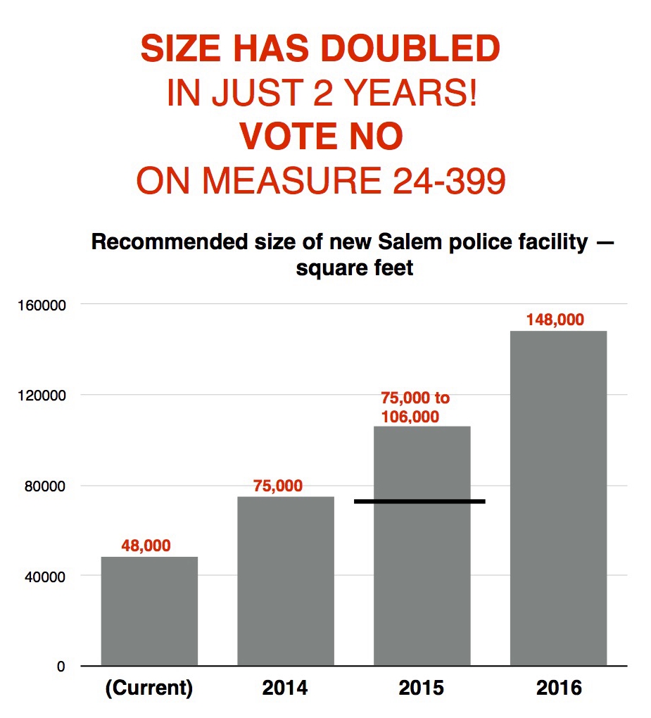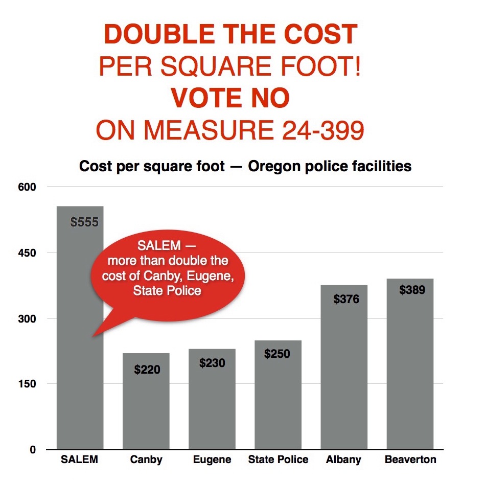 So not only are Salem taxpayers being asked to pay for a police facility that is double the size it needs to be, they’re being asked to pay double per square foot for that Police Palace.
