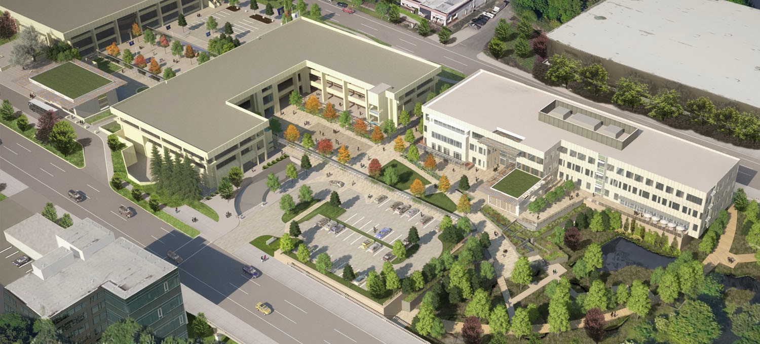 Ignore the rectangular three story building on the right side of this image. That's the police facility. Community opposition led to a plan to build it on the Civic Center campus being dropped.