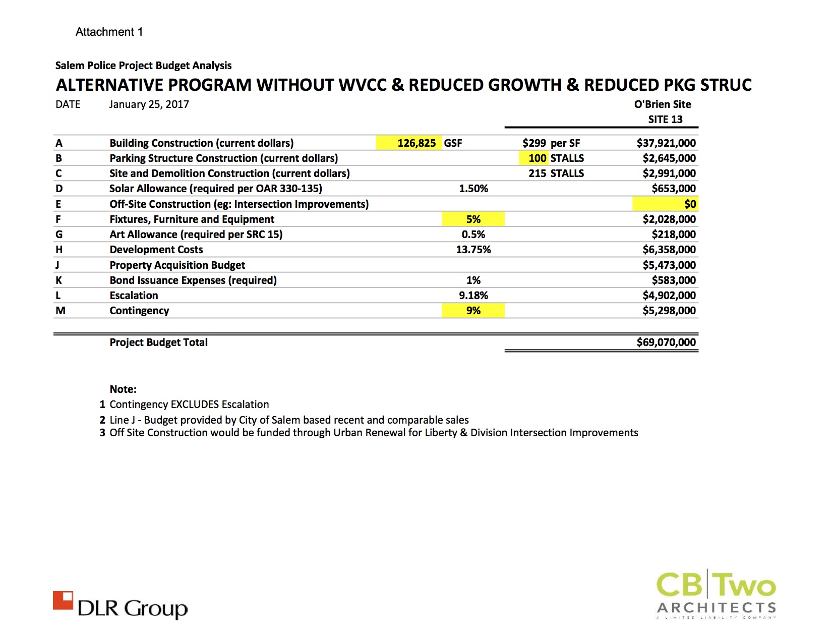 (1) $3.3 million is due to programmatic differences. Salem has a crime lab, bomb squad, special teams. This produces an extra cost in "hard construction."