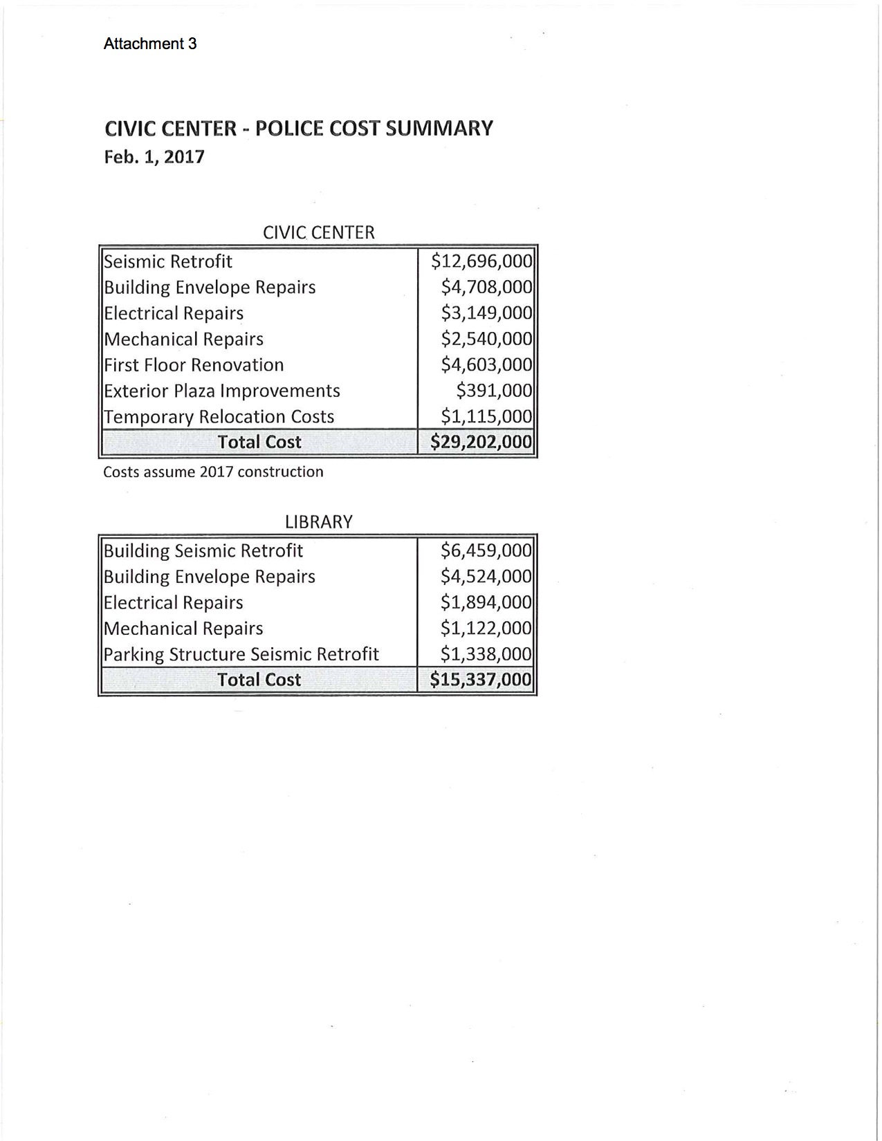 Now, the problem with this, which I pointed out in my testimony, is that $64 million for a police facility plus $15 million for Library renovations totals to $79 million, which is just $3 million less than the $82 million bond voters rejected in November. Yes, now citizens would get a Library that is earthquake-safe, PLUS a new police facility.