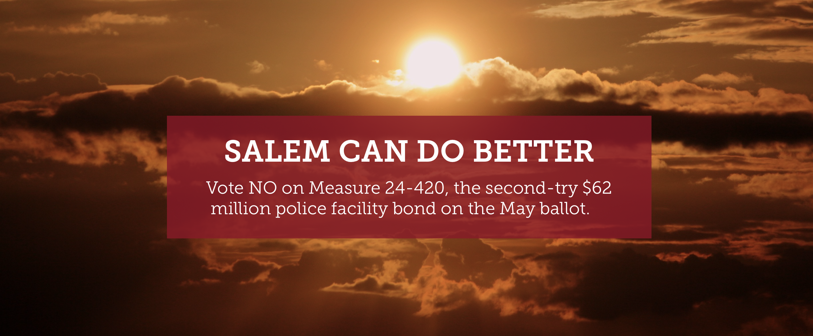 Today I updated the Salem Can Do Better web page to reflect our new campaign: urging a NO vote on the $62 million police facility bond measure on the May ballot.