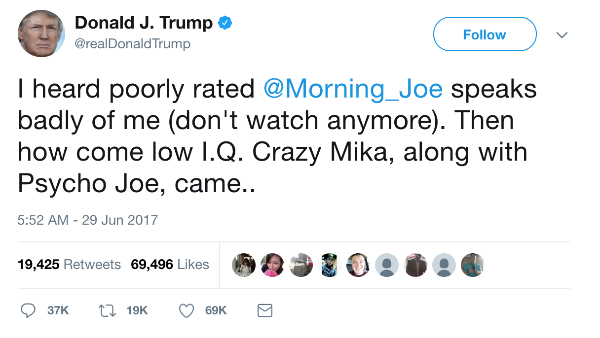 Because every minute spent talking about a stupid Trump tweet is a minute some news outlet isn't talking about real news. Such as, the Senate plan to kick 22 million people off of health insurance and decimate Medicaid, which would lead to the deaths of tens of thousands of people.