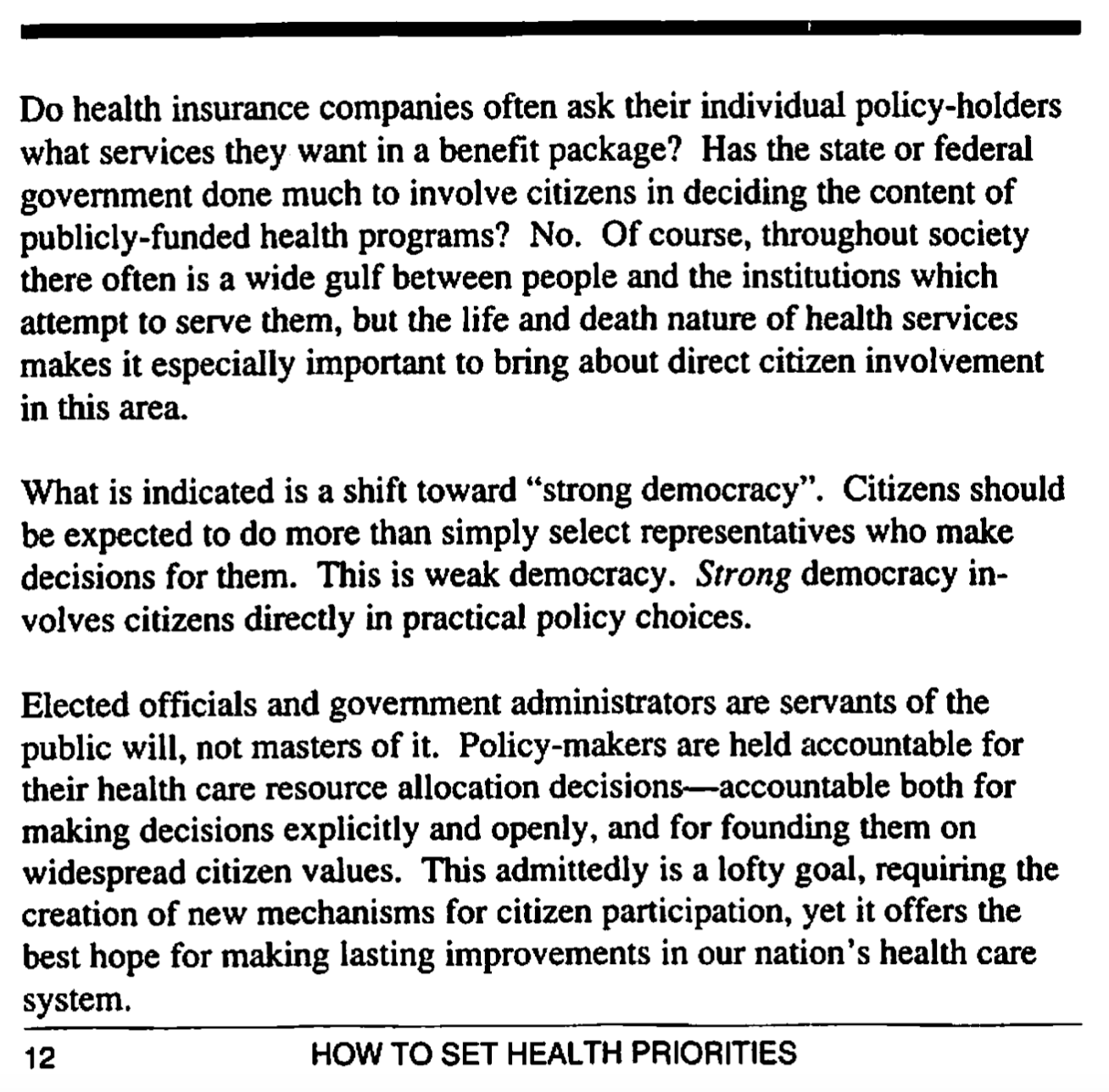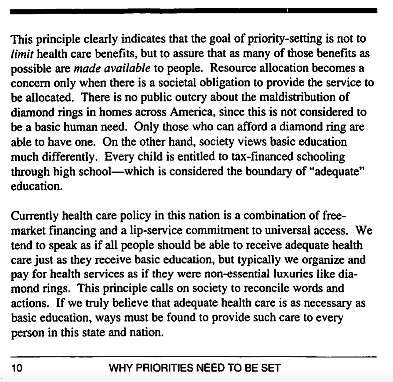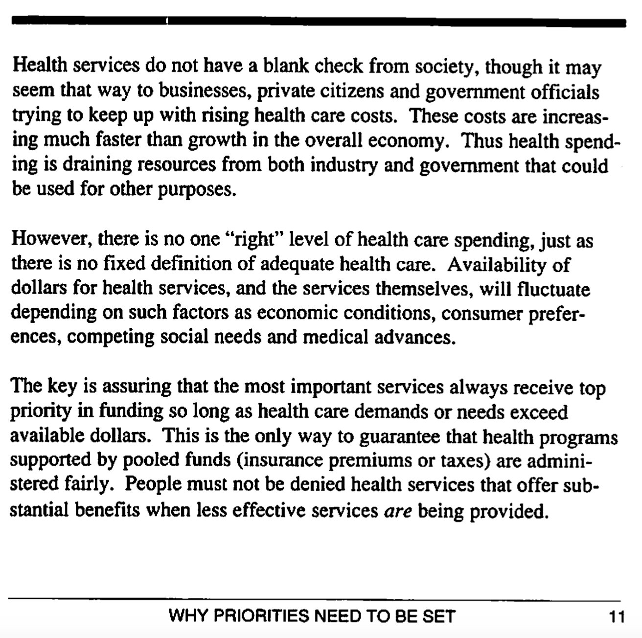 Next, three short pages about setting health care priorities.