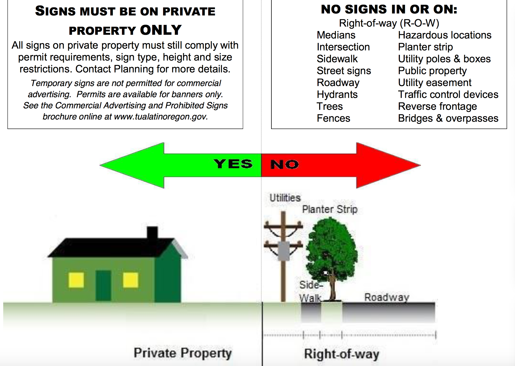Tualatin also has a brochure on this subject. Here's a screenshot of what is legal and illegal.