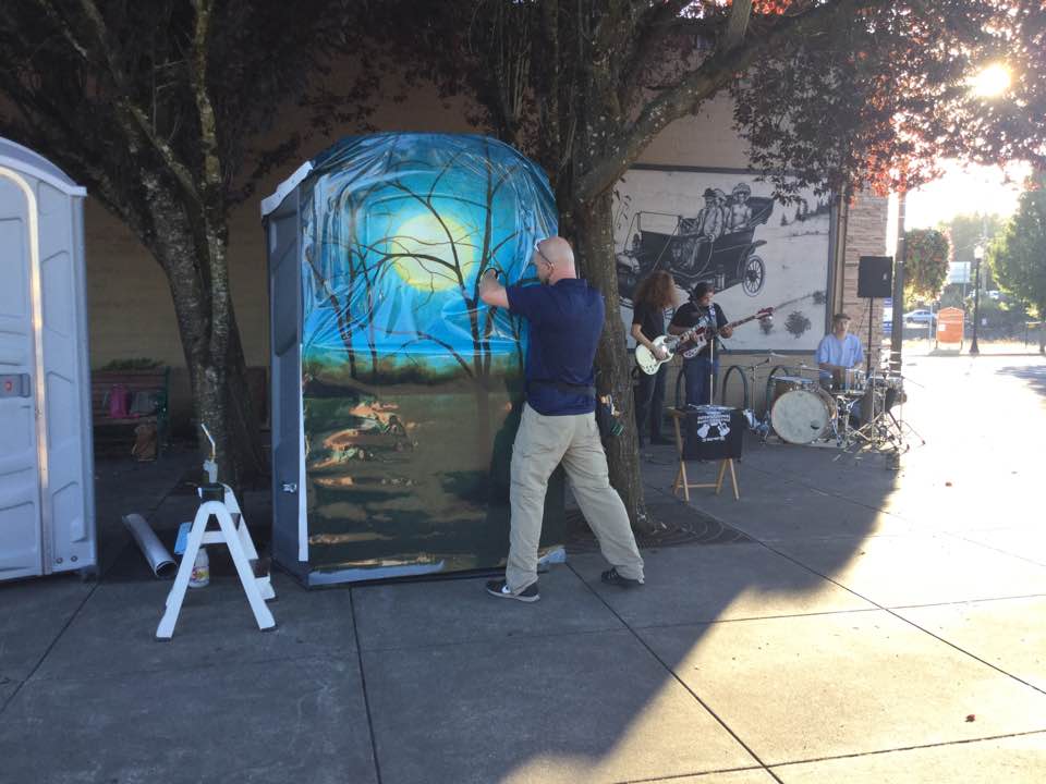Last night Oregon City had a wonderful celebration to mark the placing of two Arta Potties after the city's Police Department reached out to Courtney and asked her to help them figure out where to put the portable restrooms and what art to place on them.