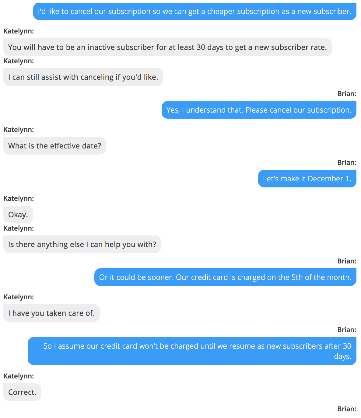 I cancelled via chat after being told I'd have to unsubscribe for 30 days before being able to get the new subscriber rate of $11 for the first six months, and $22 a month after that. So I figure we'll save $510.12 in 2018, compared to paying the ridiculously high rate of $59.01 a month that would have started on December 1.