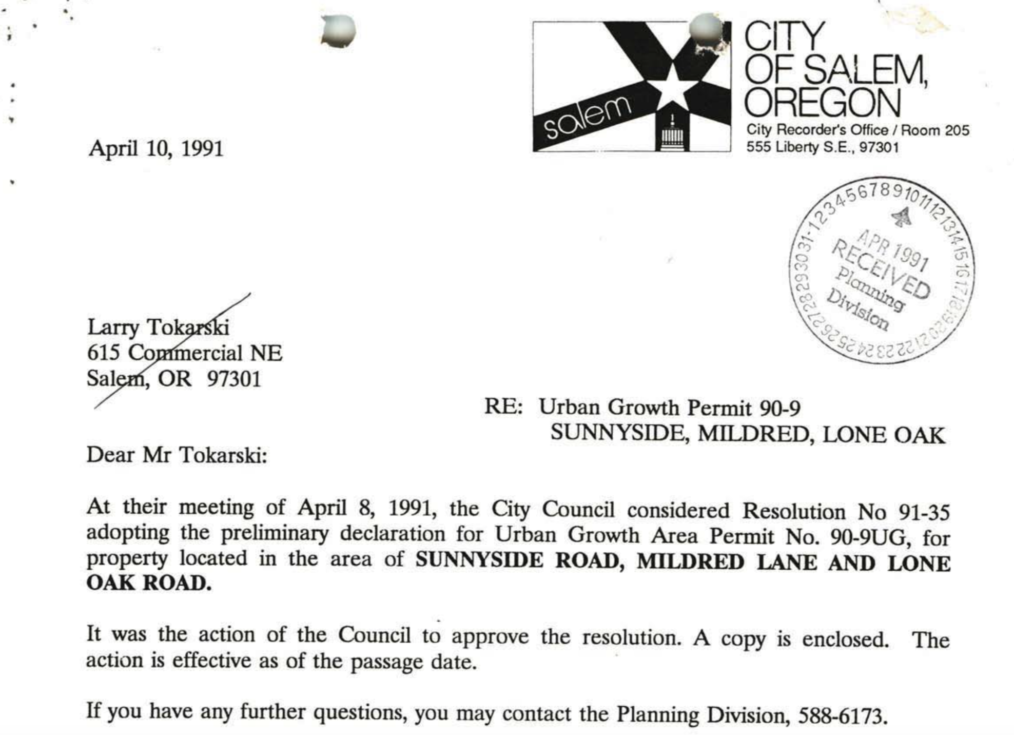 My understanding is that in 2003 the City of Salem and Tokarski had an agreement that after 350 homes were built in the Creekside development, the improvements to Lone Oak Road would be made by Tokarski. However, as noted below, in 2007 these improvements were put on hold.