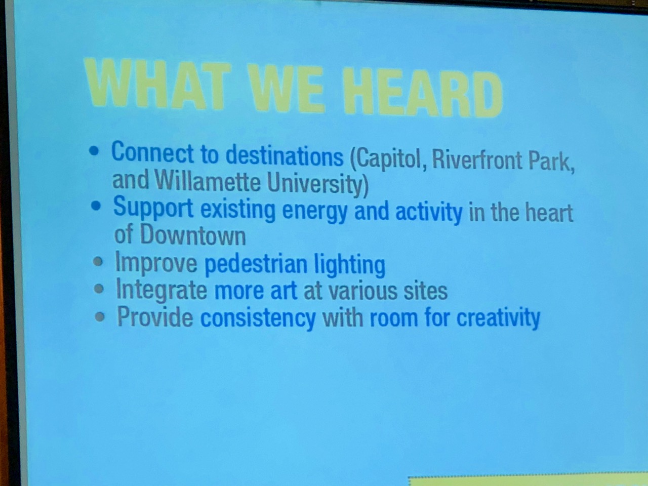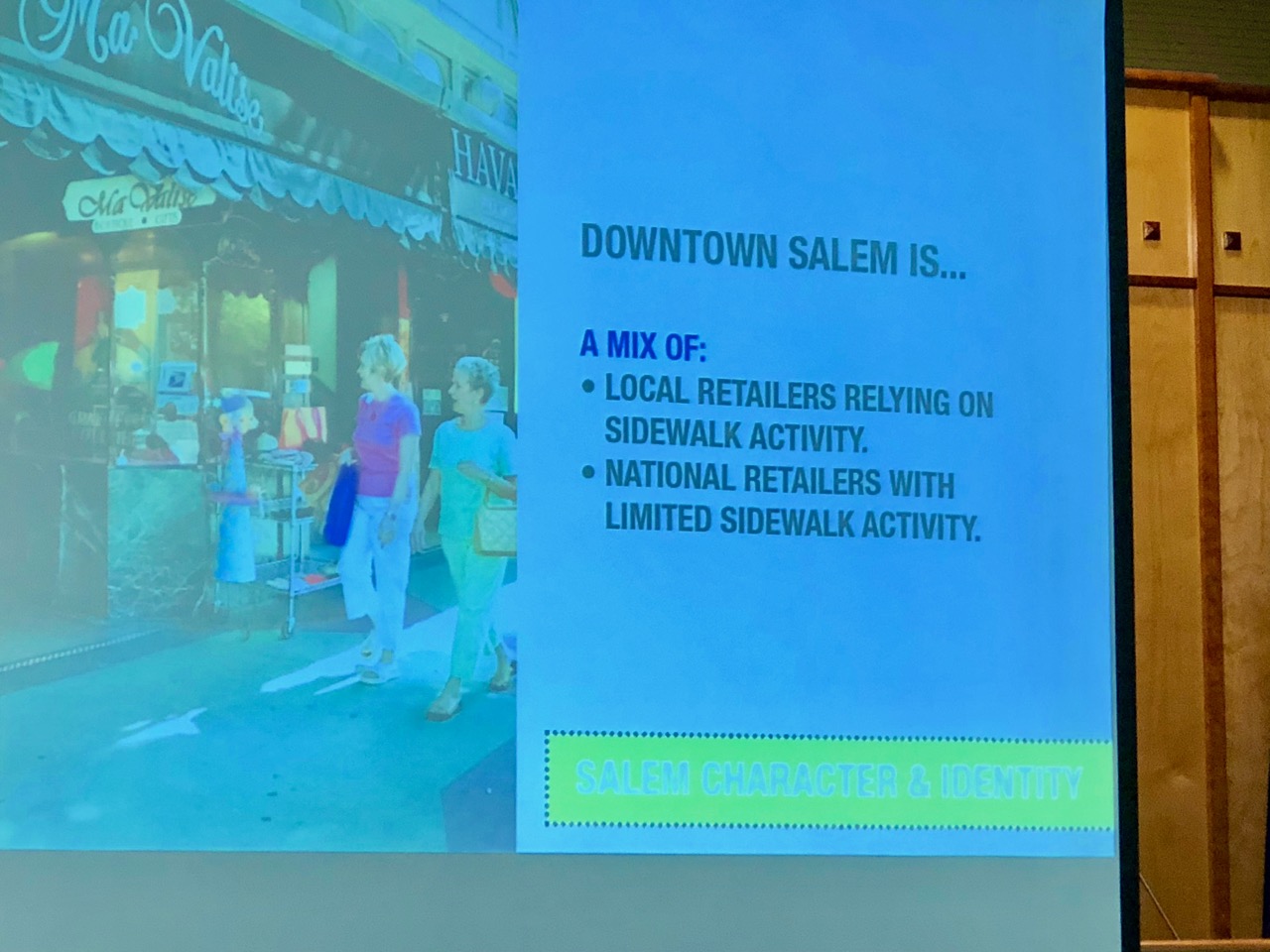 This slide was used to show Salem's connection to highly productive farmland and beautiful natural areas. Not surprisingly, the consultants said agriculture and nature should be reflected in downtown streetscape themes.