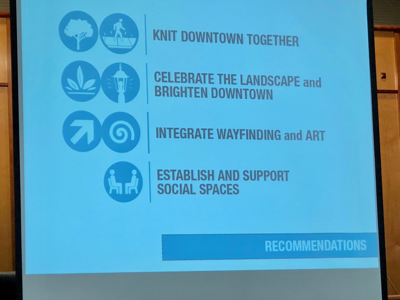 Here's more of what the consultants heard. Consistency is a point worth emphasizing. There's a mash-mash of benches, trash cans, tree grates, and such on downtown sidewalks. Creating a consistent look would go a long way toward making the area more attractive.