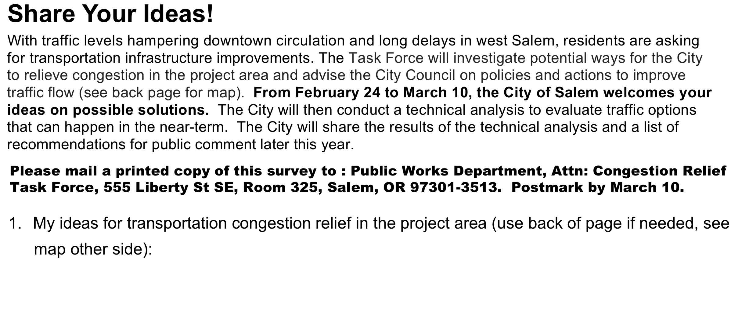 The City of Salem's Congestion Survey is curious. Also, suspicious. It basically only asks one open-ended question, what's your idea for reducing downtown congestion?