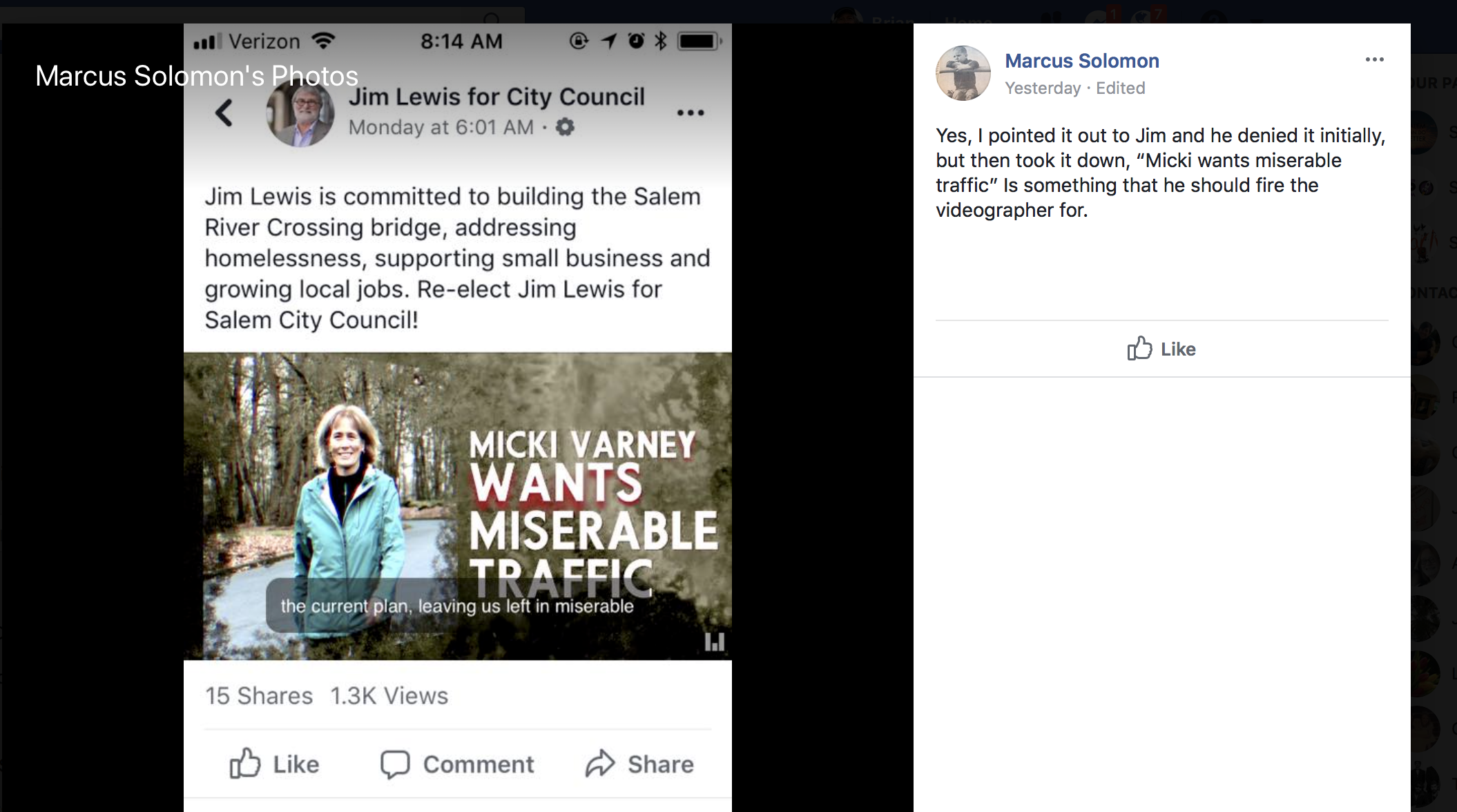City Council campaigns in Salem usually don't sink to the level Jim Lewis displayed in a video where he claimed that his opponent in the Ward 8 race, Micki Varney, "wants miserable traffic."