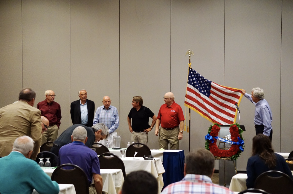 Larry Tokarski, founder of Salem Reporter, invited veterans to the front of Thursday's session to lead the crowd in the Pledge of Allegiance.