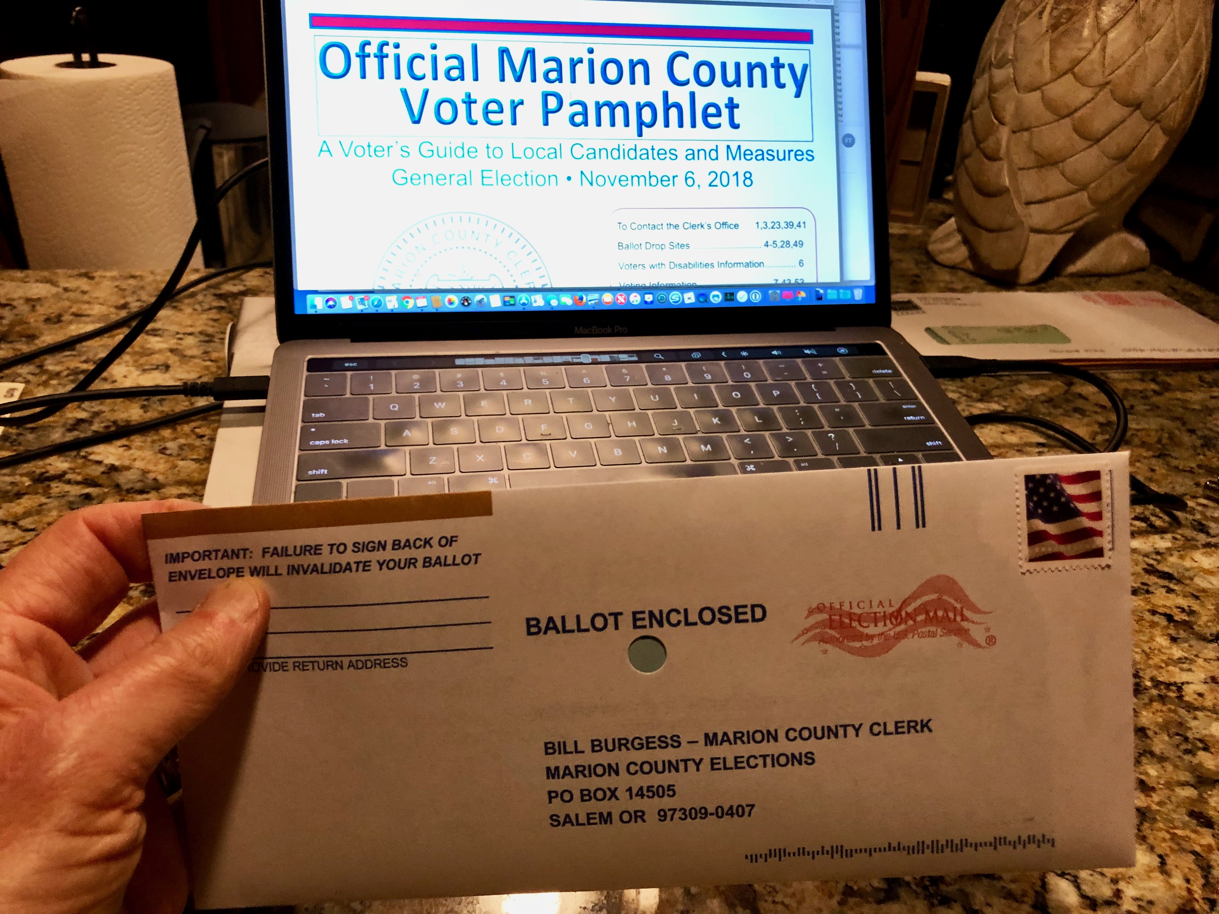 I couldn't find the Marion County Voter's Pamphlet that came in the mail, so I perused the online version to decide on some local judge races. That task completed, I put the ballot in an envelope, signed the back of the envelope, and affixed a stamp.