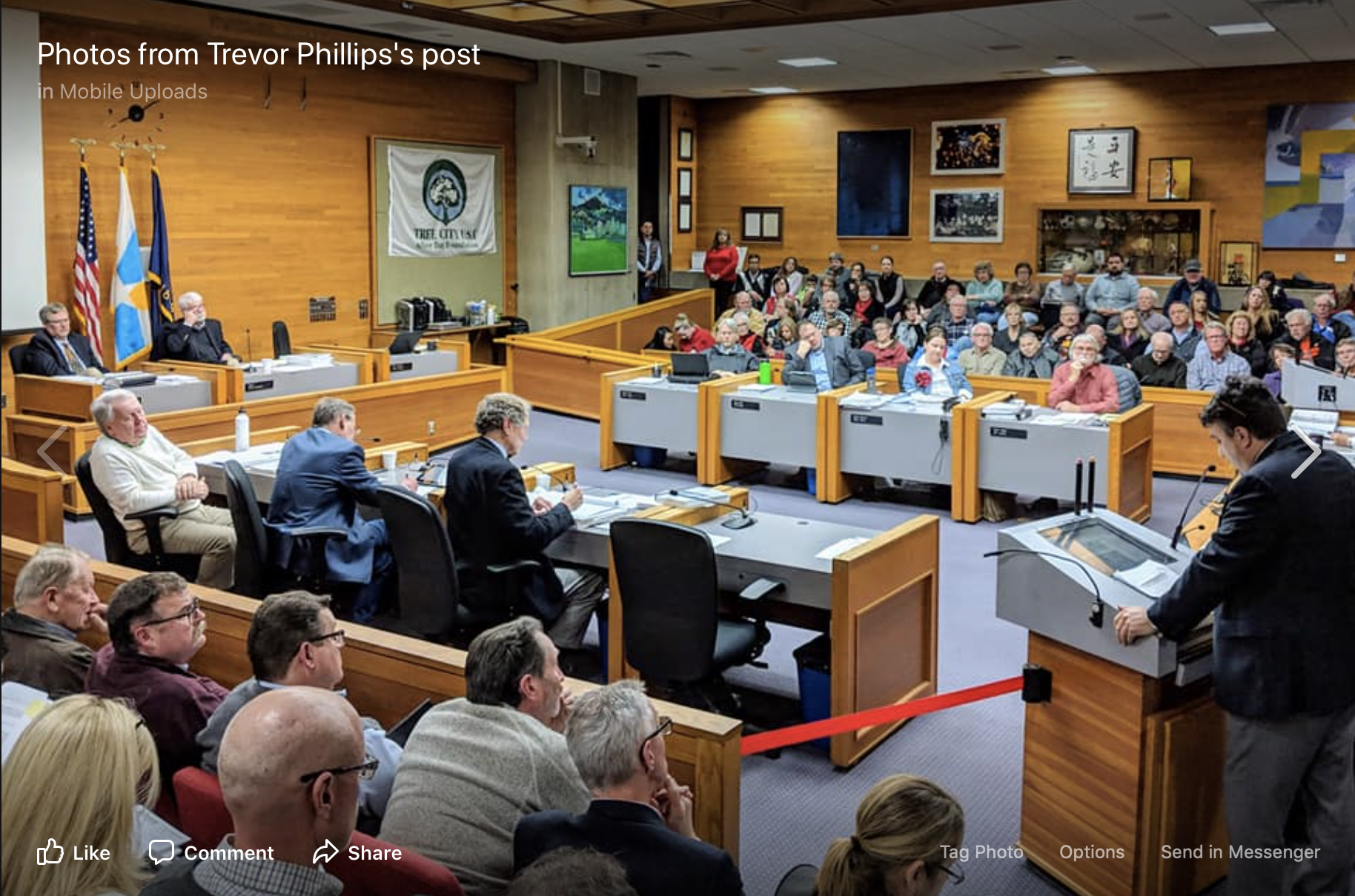 Thanks to Trevor Phillips for posting some updates on the meeting on Facebook. Here's a photo that Phillips shared showing the large crowd at the City Council meeting.