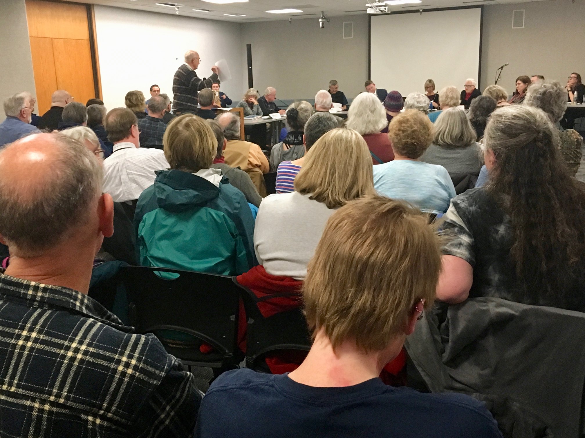 About 90 people packed the Anderson Room and about 30 of them spoke strongly in opposition to the mass book removal project that was ordered by library management in September, but was suspended after concerns were expressed by Salem City Councilors in December.