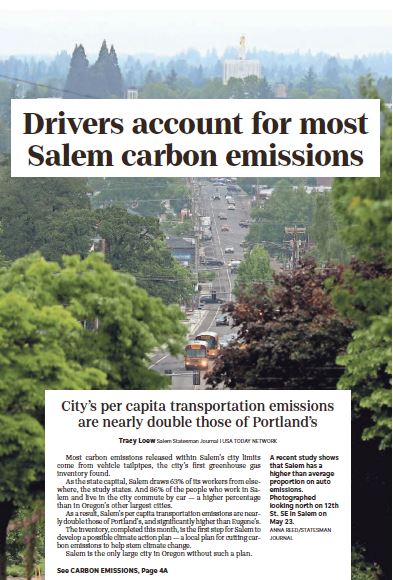 Recently Tracy Loew of the Statesman Journal wrote a great story, "Salem's per capita tailpipe emissions highest among biggest Oregon cities." (title of online version) Here's how it starts out: