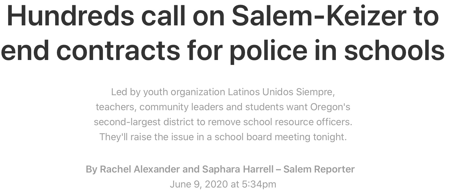 A Salem-Keizer school board meeting about next year's budget was much more heated regarding police presence in schools, as another Salem Reporter story pointed out.