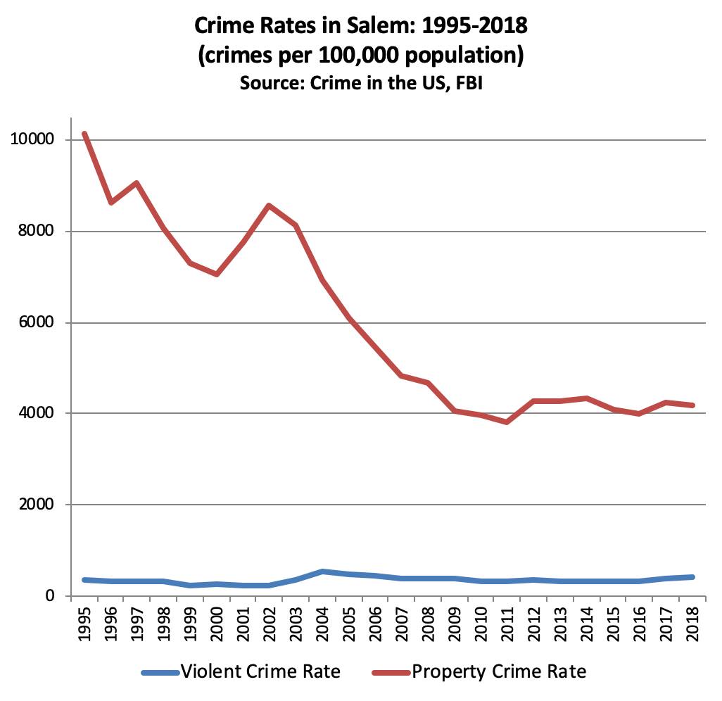 Violent crime has always been low in Salem [and] remains so. The property crime rate is less than half of what it was in 1995.