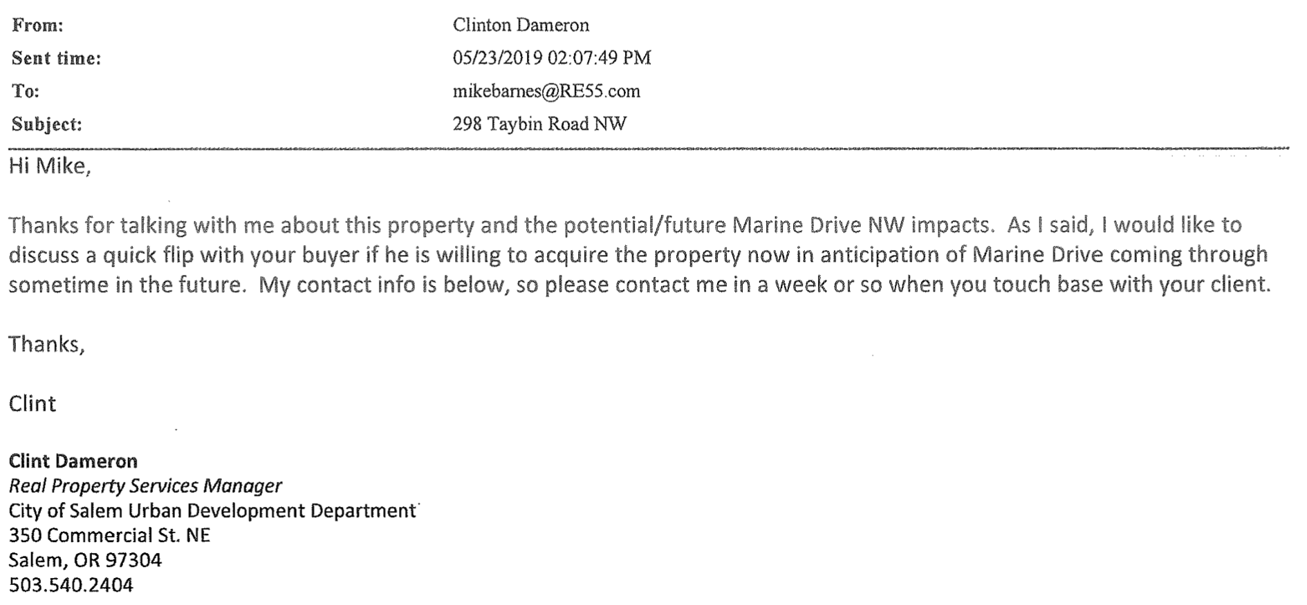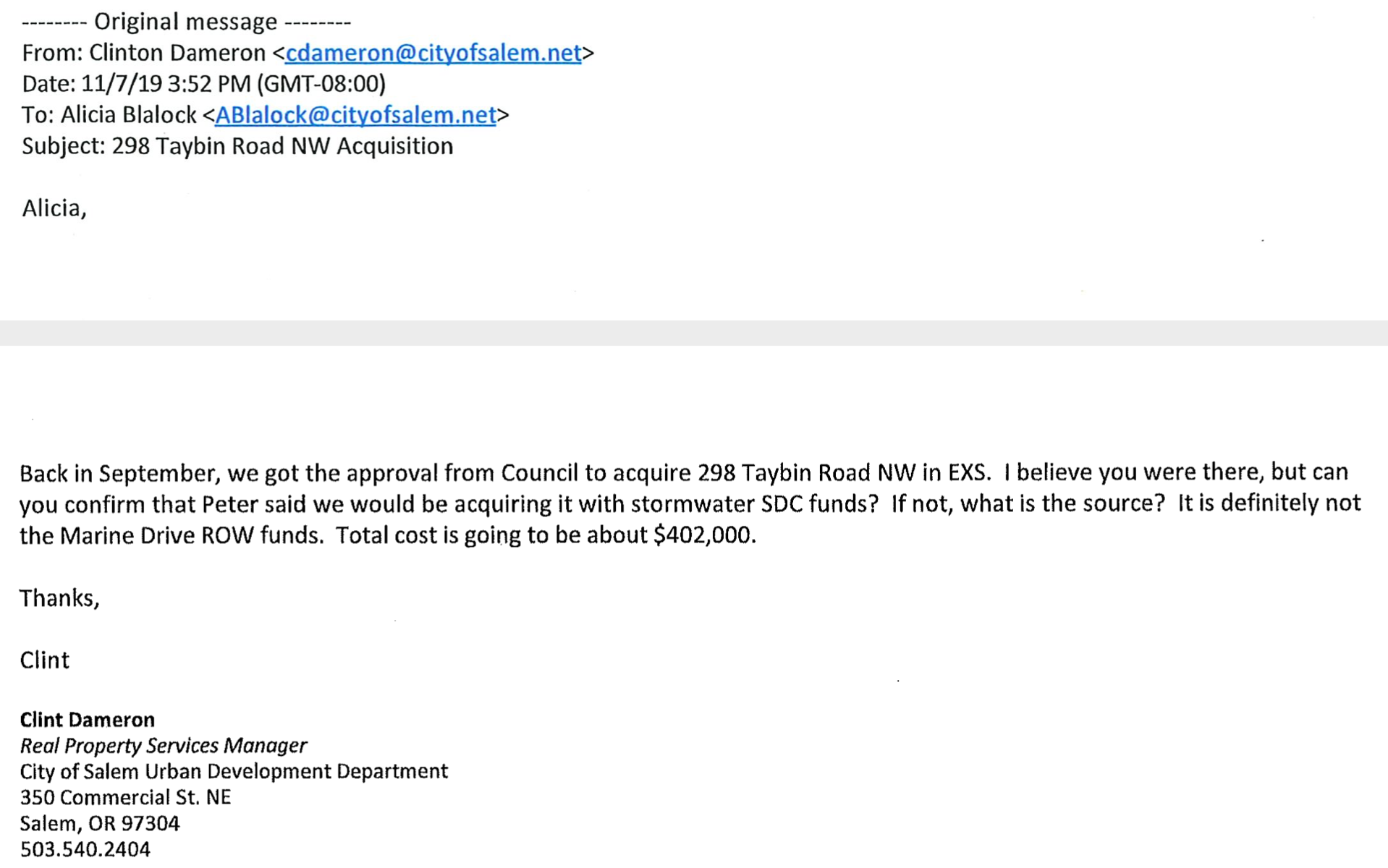 Well, I believe in holding City of Salem staff accountable. That's why I paid for public records related to the purchase of the Taybin Road property. Following are screenshots of key documents from five PDF files I got, along with my commentary on the documents.