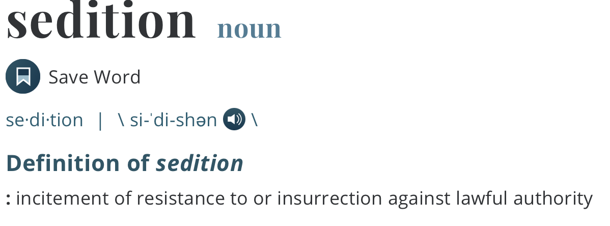 Here's the definition of sedition. That's exactly what Trump is trying to do. Incite his followers to overturn the lawful results of the election.