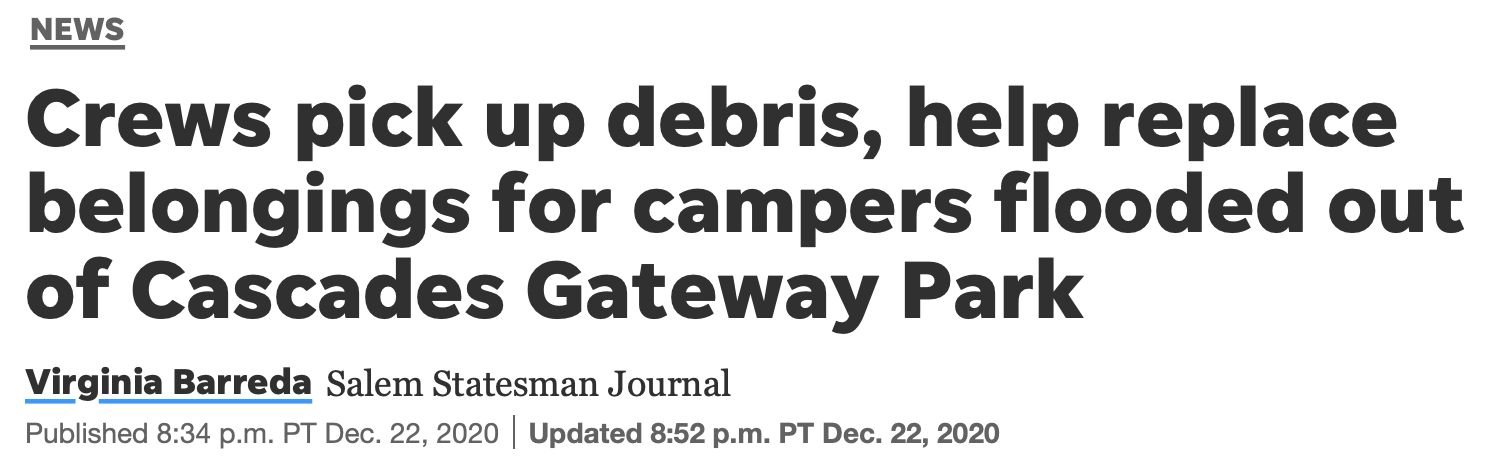 Today the Statesman Journal had a front page story about homeless campers being flooded out of Cascades Gateway Park following the recent heavy rains.