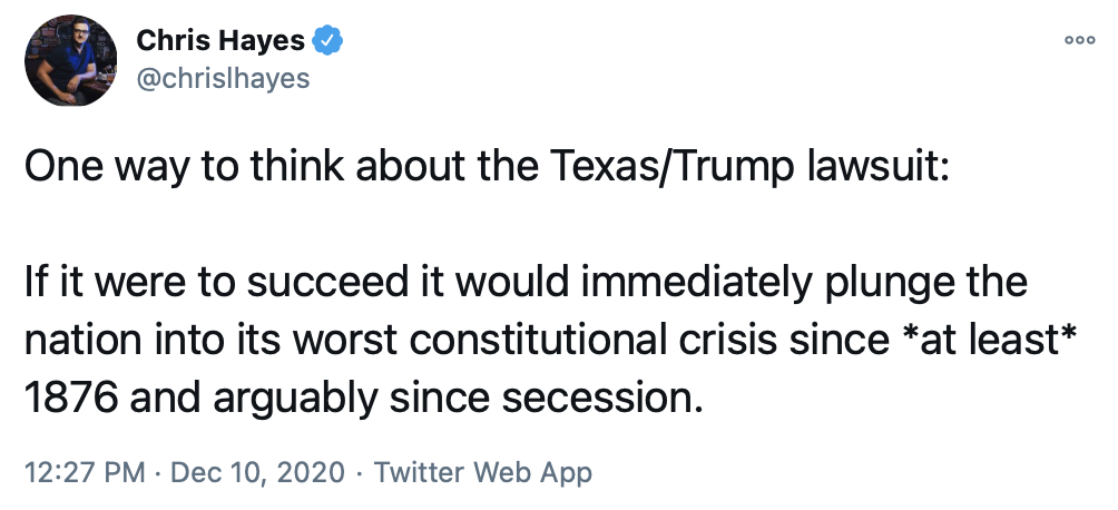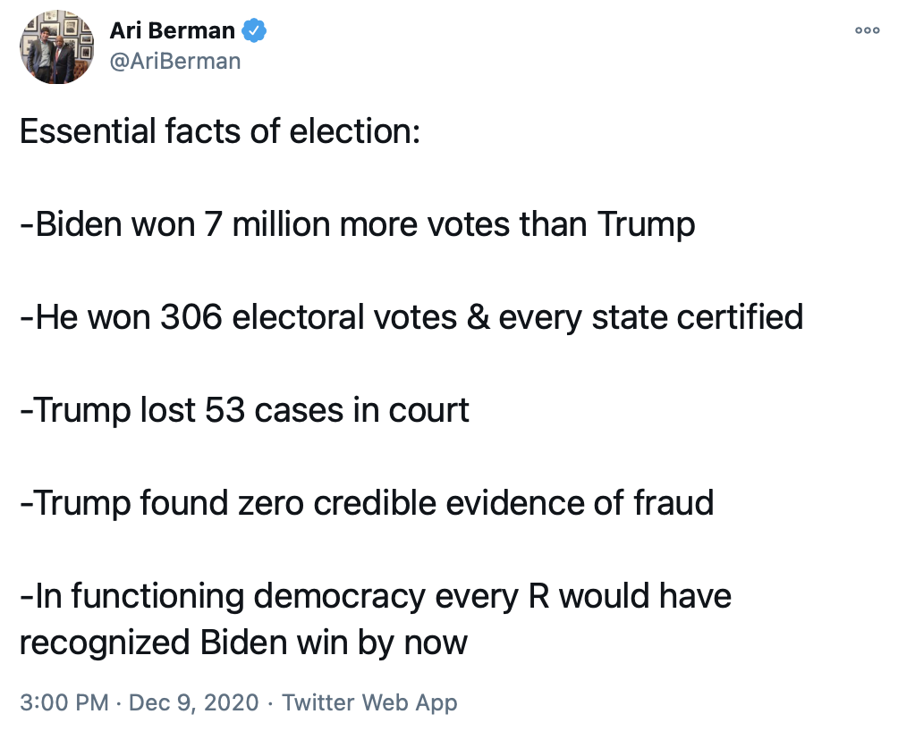 Here's 13 tweets from people I follow on Twitter about Trump's last-ditch attempt to steal the election. This is so outrageous, we can't look upon it simply as Trump being Trump. Nothing like this ever has been attempted before. It's a highly dangerous attack on the foundation of our democracy — elections.