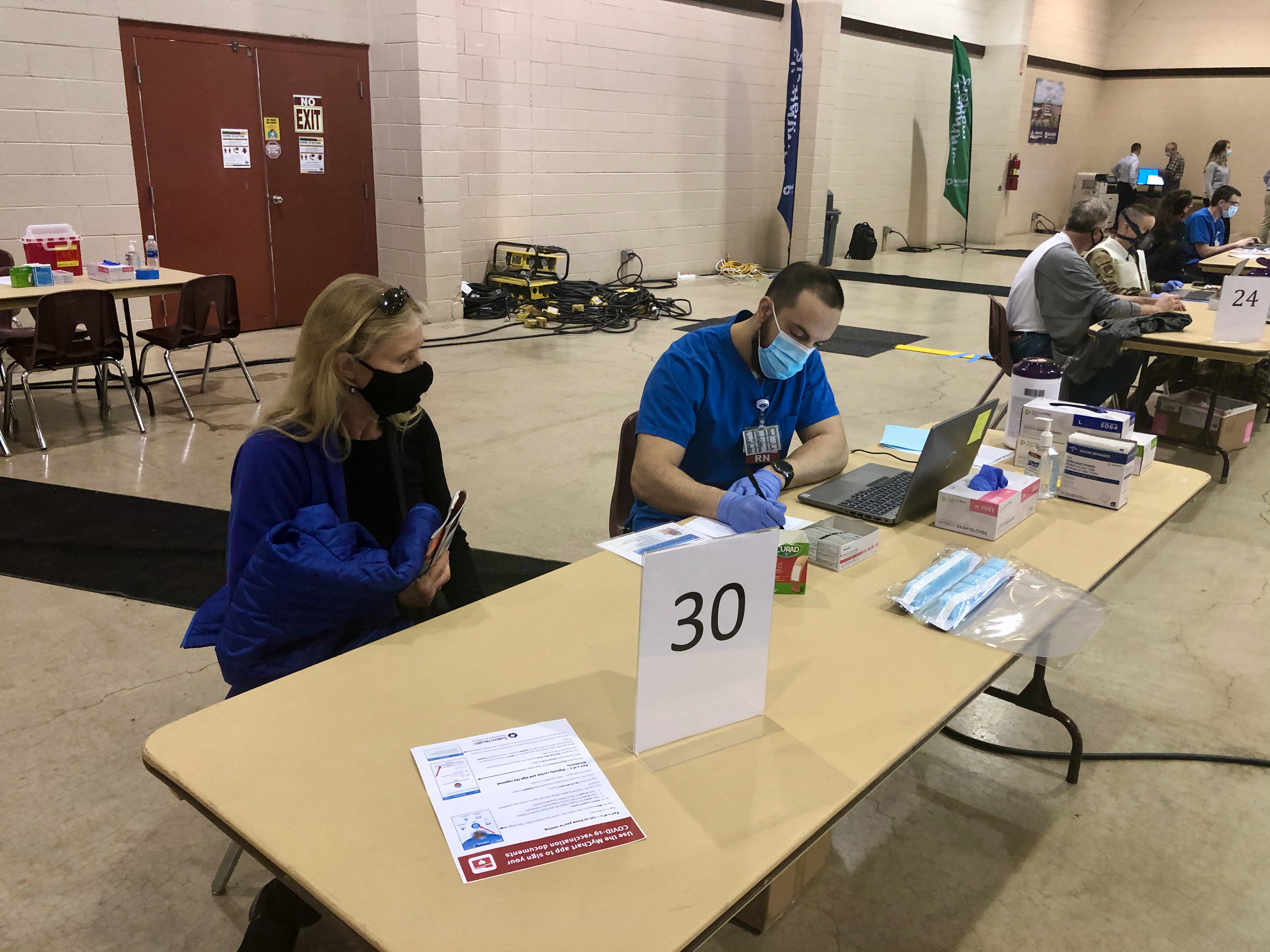 It didn't take long to reach the end of the line. A staffer apologized for a short delay in the immunization process which lasted less than five minutes. Dr. Ralph Yates, the Chief Medical Officer of Salem Health, was at the head of the line checking cards. Yates saw me a few times early in 2020 about my sciatica problem.