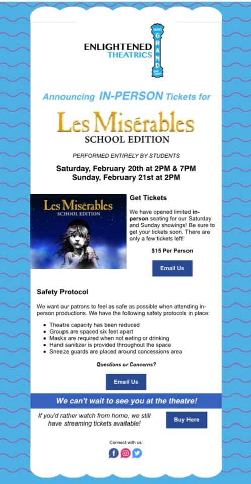 Last weekend Salem's Enlightened Theatrics reportedly broke the Oregon Health Authority Covid rules by having in-person performances of a student production of Les Miserables that exceeded what is allowed for indoor entertainment.