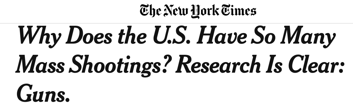 The only variable that can explain the high rate of mass shootings in America is its astronomical number of guns.