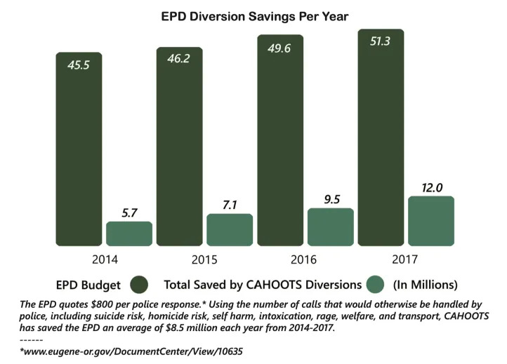 Even if the initial savings from a Salem crisis response team was only 1/6 of the savings Eugene had in 2017, a Salem CAHOOTS costing $2 million a year would pay for itself.