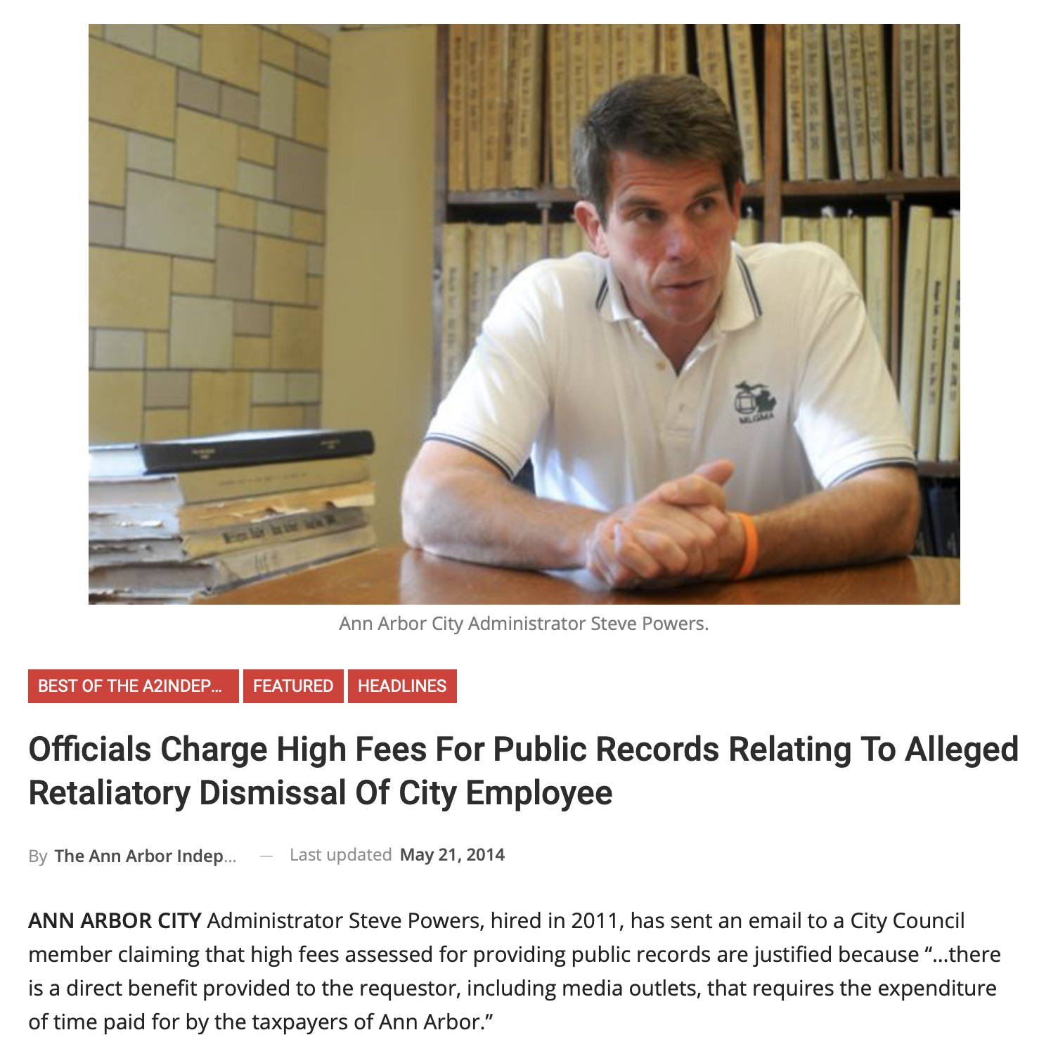 Interestingly, I just came across a story from 2014 in the Ann Arbor Independent newspaper about how Steve Powers, City Manager for the City of Salem, was involved in a public records controversy back when he was the Ann Arbor city administrator.