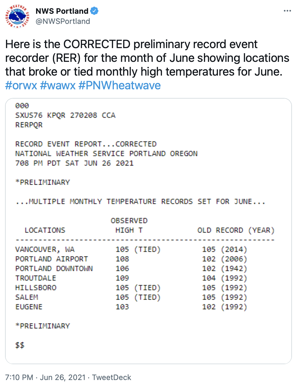 Screen Shot 2021-06-26 at 9.07.50 PMToday Salem tied the record for a high temperature in the month of June, 105 degrees.