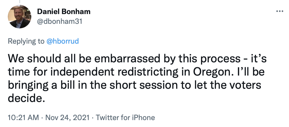 Nonetheless, a Republican state legislator hopes to have the 2022 session of the Oregon legislature advance a proposal for an independent redistricting commission.