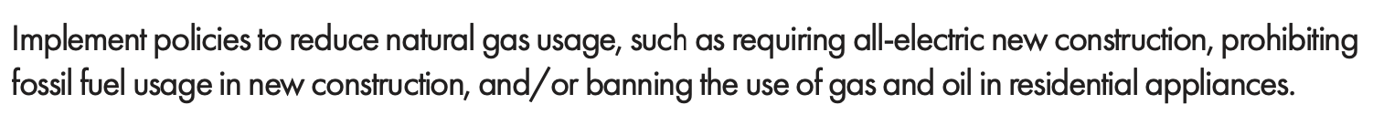 Nonetheless, the plan singles out reducing natural gas use as a major factor in achieving the plan's greenhouse gas reduction goals.