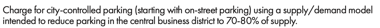 Another controversial action is to use downtown parking meters to reduce the use of parking spaces to about three-fourths of what's available.