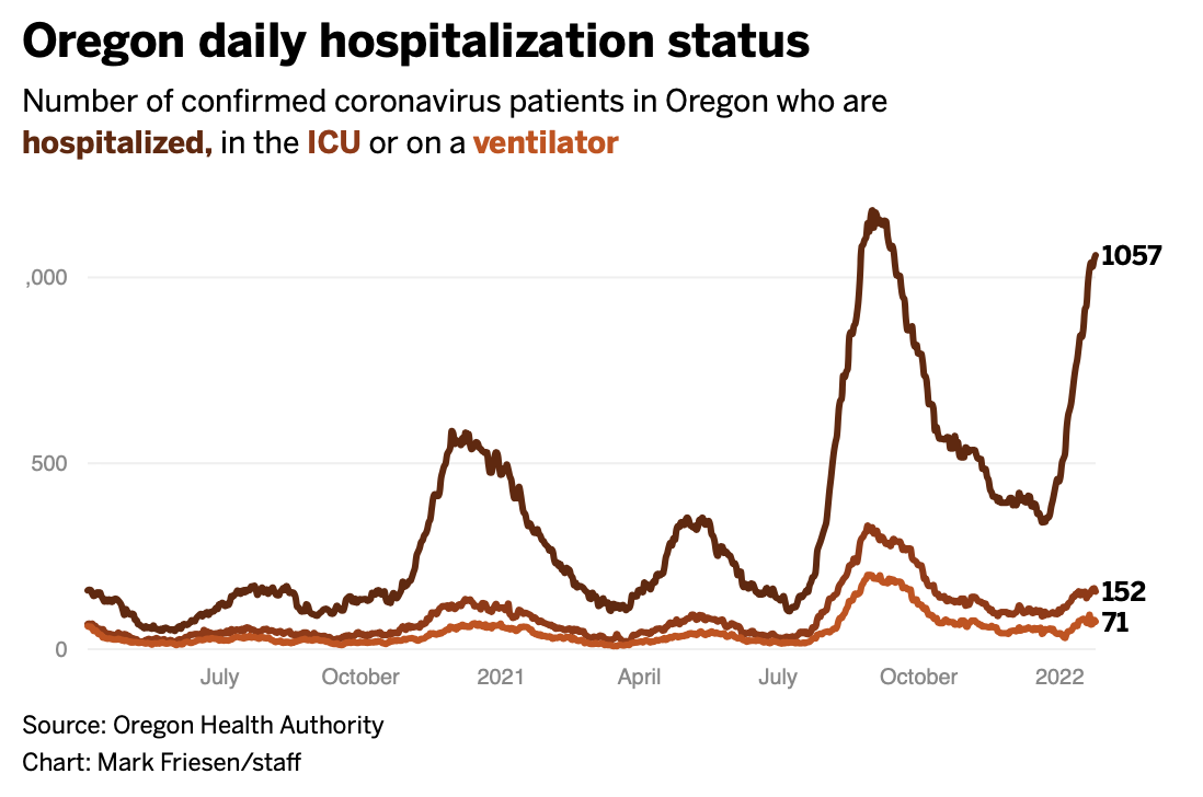 No, we haven't gone back to normal. Nor should we, not when several thousand people a day are dying from Covid-19 in the United States and hospitals are filled with Covid patients. Here's a chart from an Oregonian story