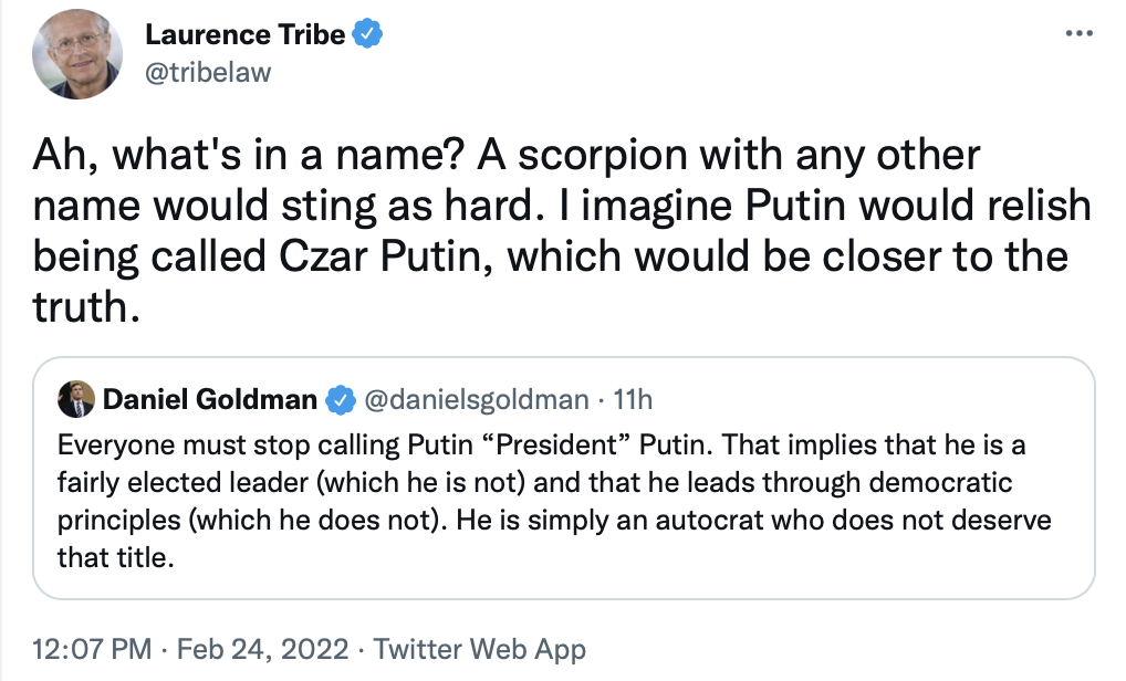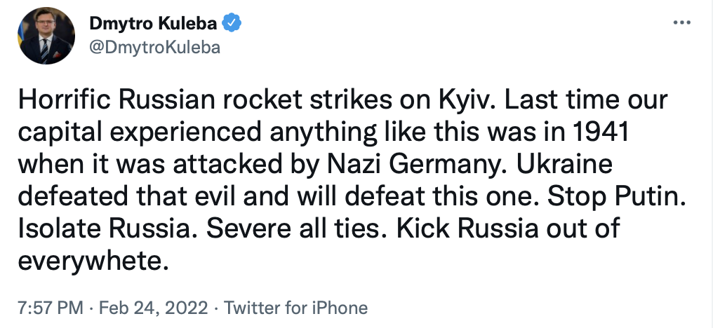 Here's some Twitter tweets I've been collecting about the Russian invasion of Ukraine. There's courage of display, as the people of Ukraine battle the stronger Russian military, and brave Russian citizens demonstrate against what Putin has wrought, risking arrest for speaking truth to power.