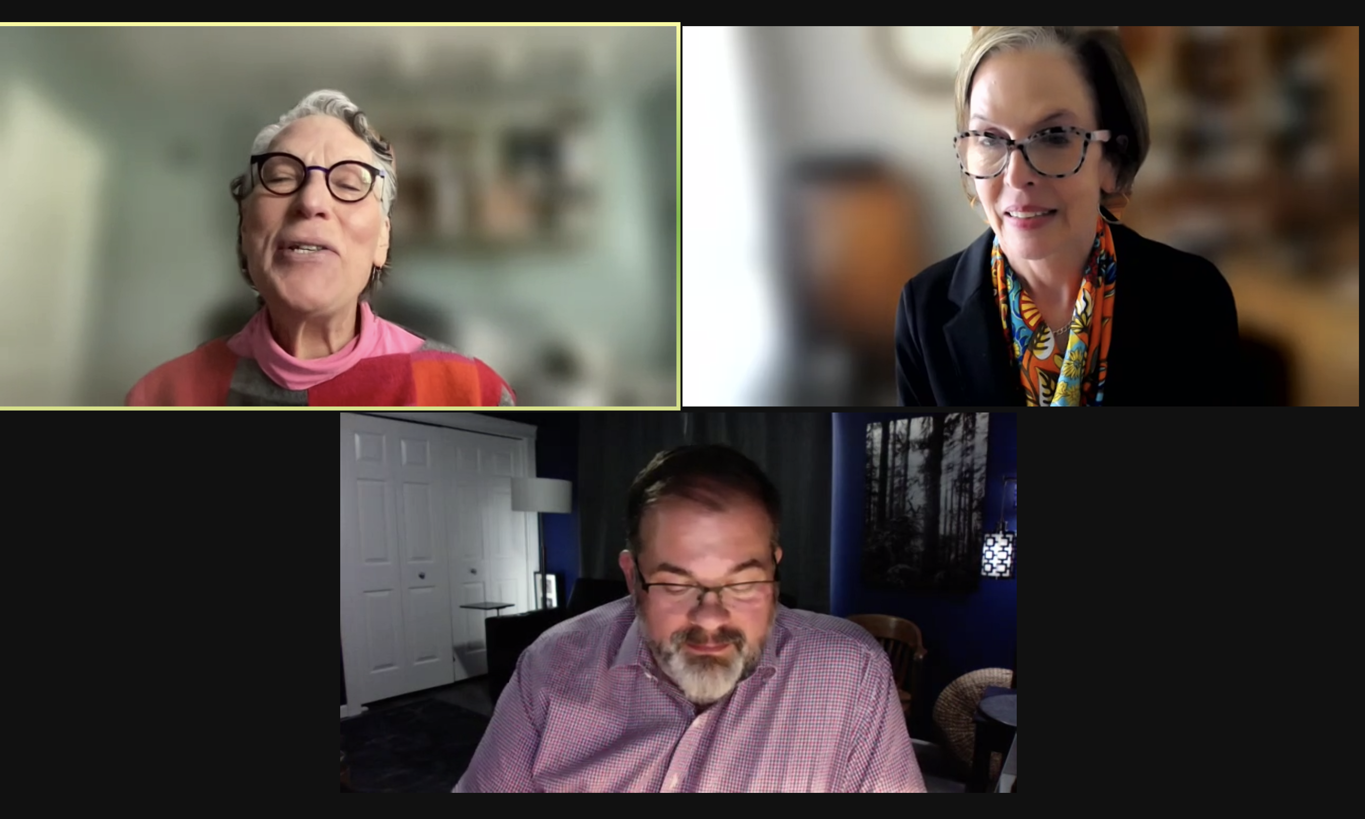 Cindy Condon, City Club moderator (top left), Chane Griggs (top right), Chris Hoy (bottom)