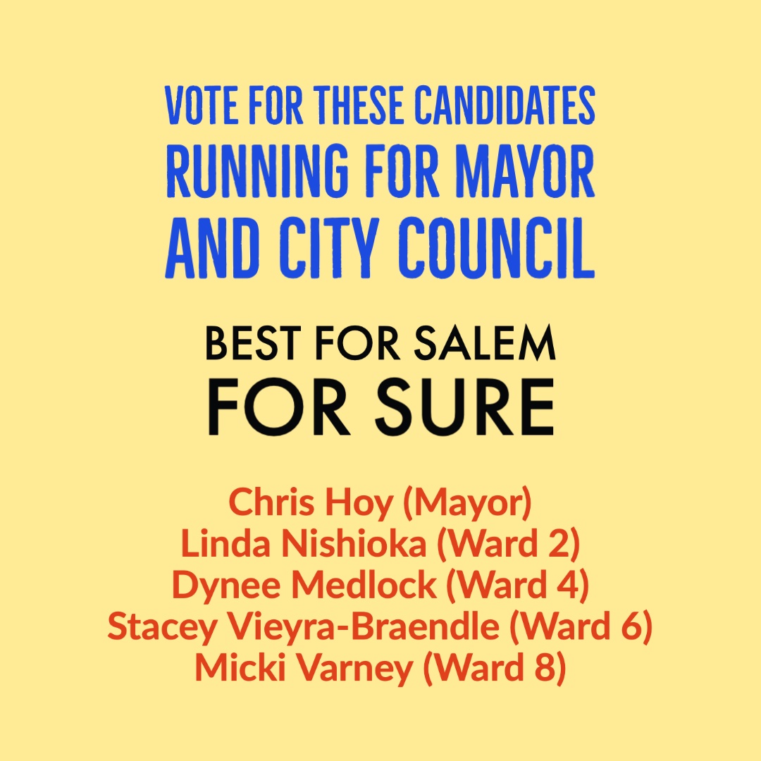 And why I'm recommending that you vote for these candidates in the May election that likely will determine who becomes the next Salem mayor and wins the even-numbered Salem City Council seats.