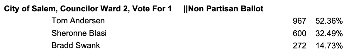 I sympathize with those who say, correctly, that Tom Andersen has been living and working in the Salem area for quite a while, serving as an unpaid city councilor since 2014, while Brad Witt has essentially swooped in at the last moment to file for HD 19 as a Salem resident. That strikes me as a valid campaign issue.
