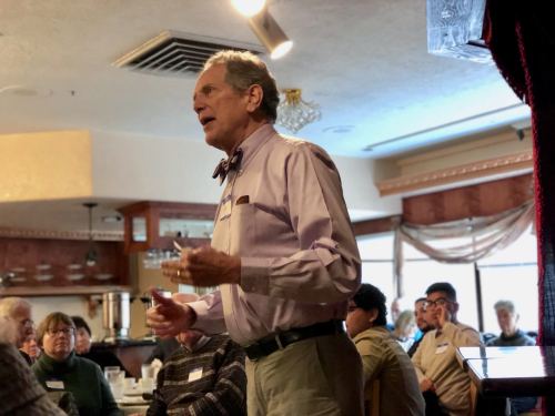 In February 2019 I wrote a blog post about a talk Andersen gave to a Progressive Salem audience at the Marco Polo restaurant (photo above), calling it "Tom Andersen: progressivism is alive and well in Salem."