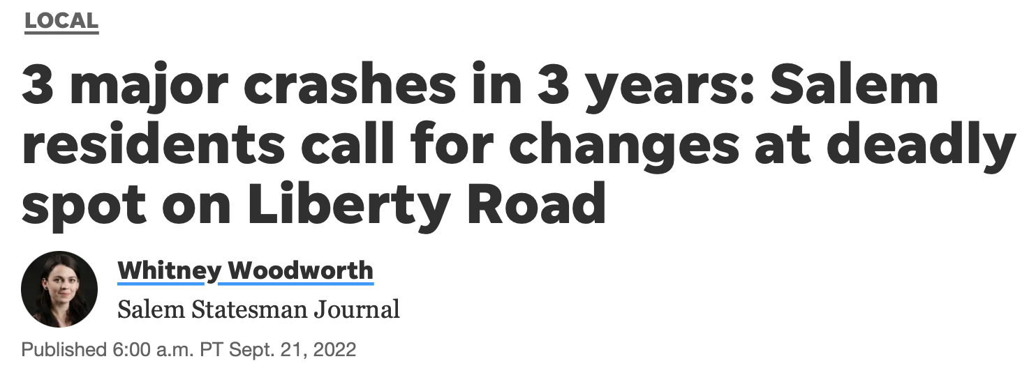 Yet City of Salem staff still don't see a reason to make the intersection safer. Here's an excerpt from the story.