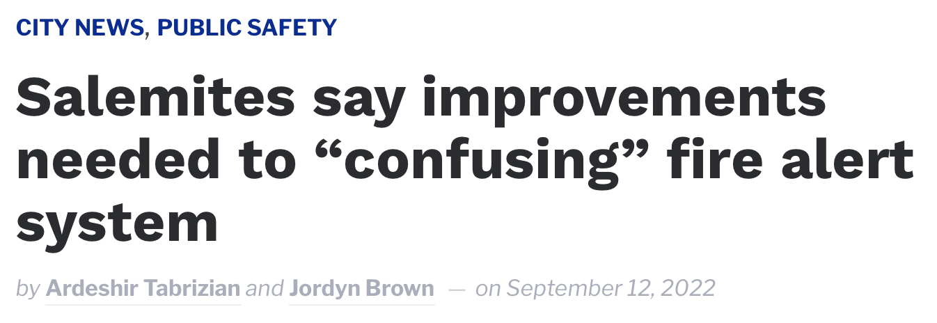 A few days ago the Salem Reporter had a story that echoed our experience: Salemites say improvements needed to "confusing" fire alert system. For sure. Here's how the story starts off.