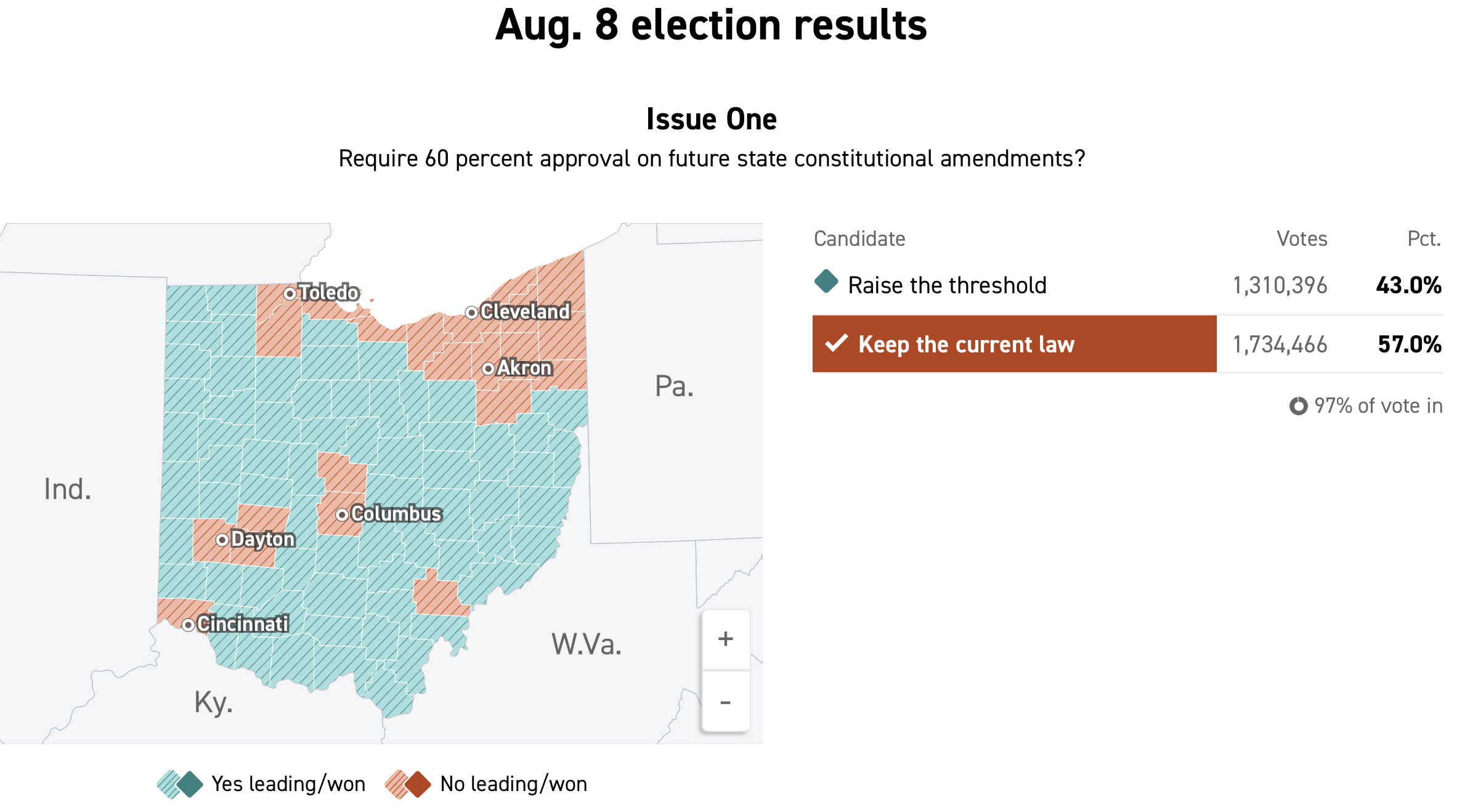 Well, today we learned how Ohio voters felt about that Republican attempt to subvert democracy. The proposal failed, big time. With 97% of the vote in, Issue One is failing 43% to 57%.