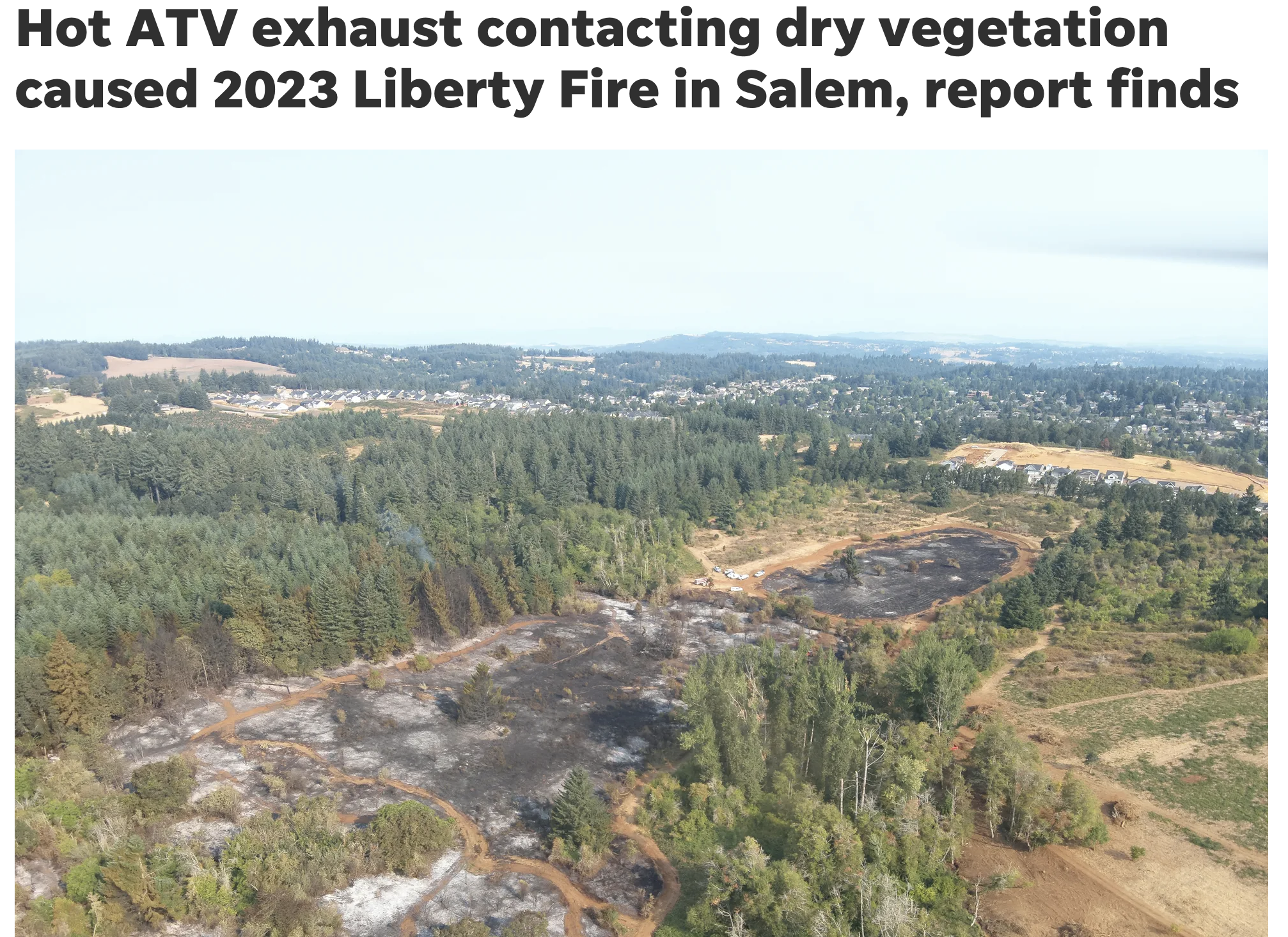 Thanks to an informative story by Capi Lynn in today's print edition of the Statesman Journal, we learned the cause of the August 23, 2023 brush fire in south Salem known as the Liberty Fire, because it was adjacent to Liberty Road.