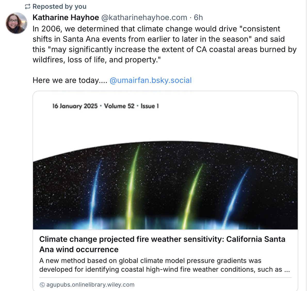 Then came the Santa Ana winds, gusting to as much as 100 miles an hour. The winds turbocharged the wildfires, causing them to grow rapidly. This is January. Usually the Santa Ana winds occur earlier. However, climate scientists predicted that global warming would cause the winds to become stronger and occur later.