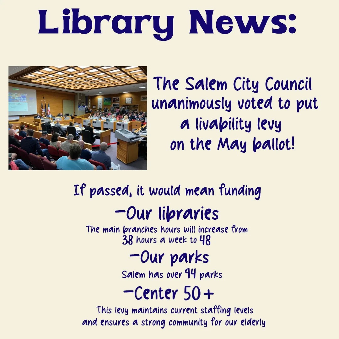 The tax would generate about $14 million in fiscal year 2026 and that money would go specifically toward restoring hours at the public library that were cut in 2024 and maintaining Salem’s parks and Center 50+.